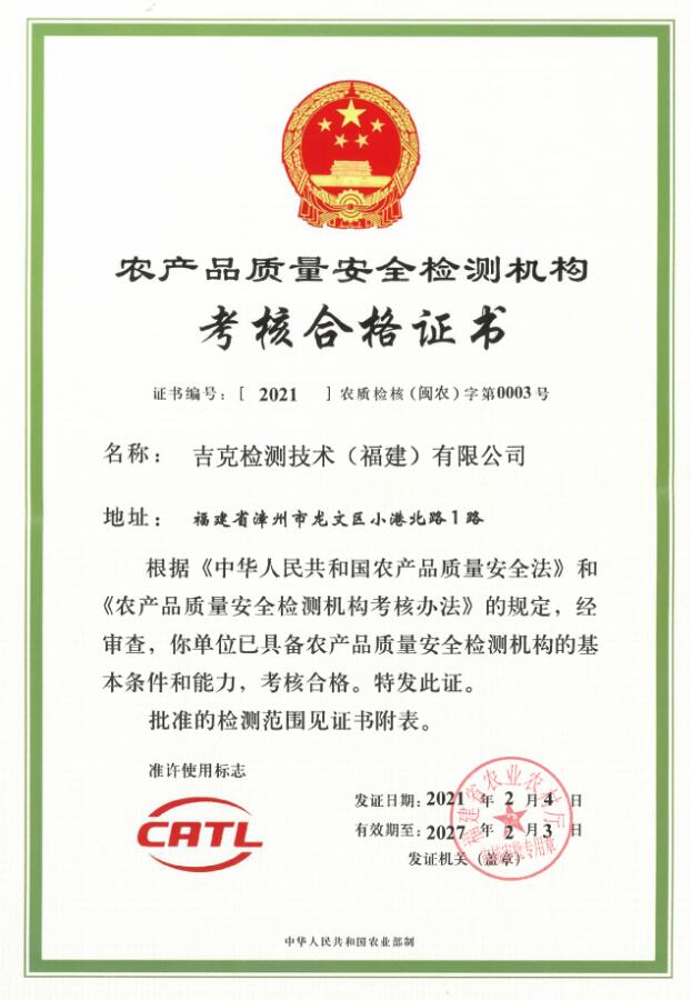 吉克檢測(cè)技術(shù)(福建)有限公司,位于福建省漳州市龍文區(qū)小港北路1號(hào),于2019年8月注冊(cè)成立,是一家獨(dú)立的第三方檢測(cè)公司。公司已經(jīng)通過(guò)檢驗(yàn)檢測(cè)機(jī)構(gòu)計(jì)量認(rèn)證(CMA)、農(nóng)產(chǎn)品質(zhì)量安全檢測(cè)機(jī)構(gòu)資質(zhì)認(rèn)證(CATL),獲得中國(guó)合格評(píng)定國(guó)家認(rèn)可委員會(huì)(CNAS)認(rèn)可。公司本著“嚴(yán)謹(jǐn)、規(guī)范、高效、協(xié)作”的原則和對(duì)客戶及社會(huì)高度負(fù)責(zé)的精神,充分利用本公司優(yōu)質(zhì)的檢測(cè)環(huán)境、先進(jìn)的檢測(cè)設(shè)備和專業(yè)的技術(shù)人員,第一時(shí)間為客戶提供科學(xué)、公正、準(zhǔn)確的檢驗(yàn)檢測(cè)報(bào)告。       公司實(shí)驗(yàn)室面積1100多平方米,儀器設(shè)備兩百多臺(tái)(套),固定資產(chǎn)一千多萬(wàn)元,在職員工31人,技術(shù)人員中的中高級(jí)職稱及同等能力人數(shù)占60%以上。我們的服...